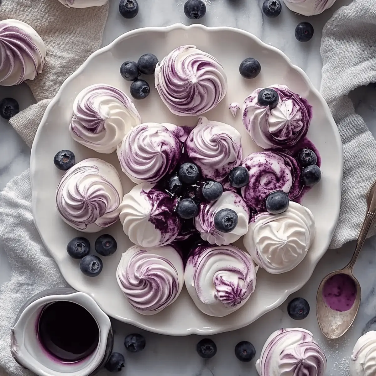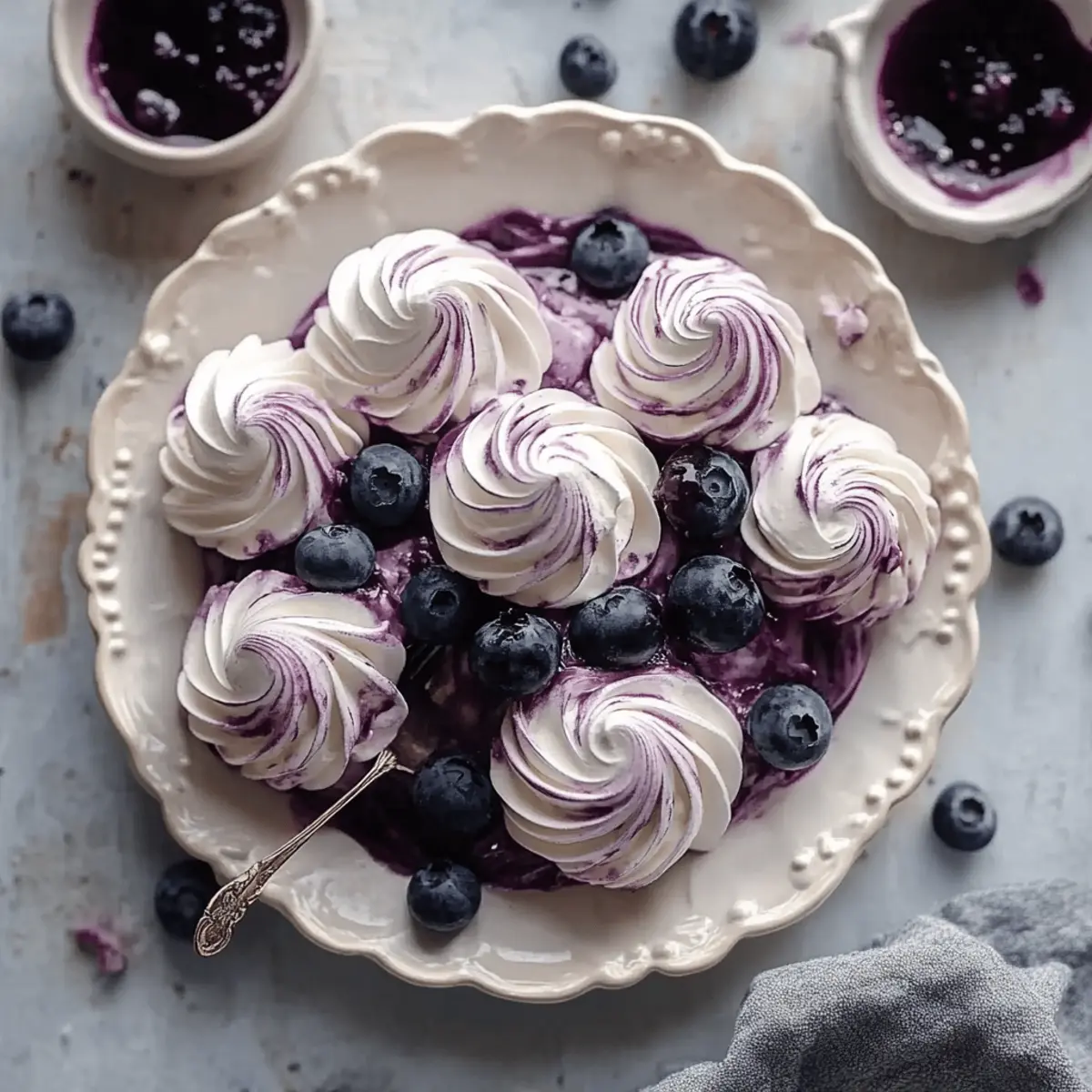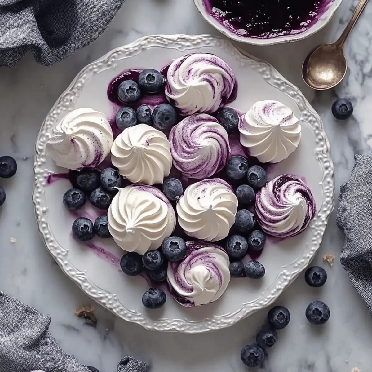 Gentle Swirling: When adding the blueberry sauce, use a light hand. A gentle swirl helps create the marbled effect without deflating the meringue, keeping it airy and delicious.