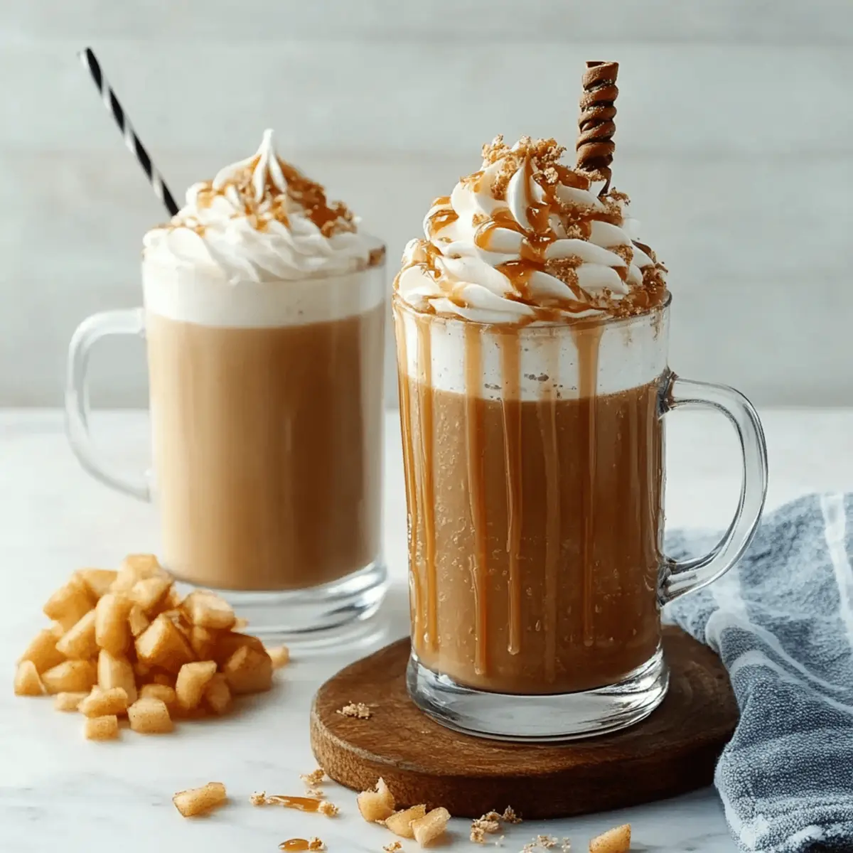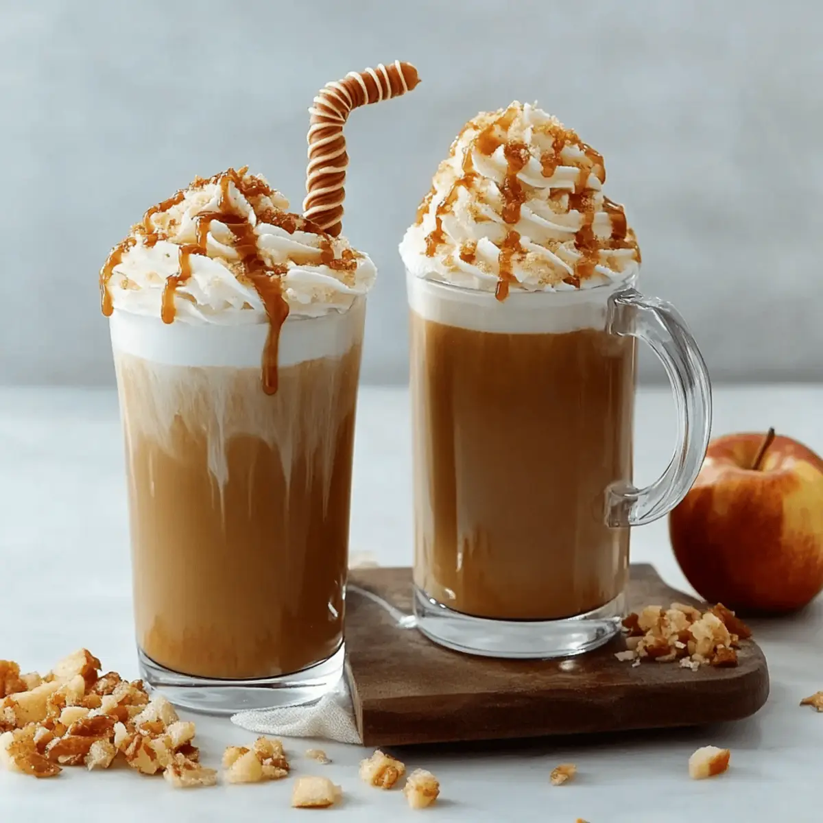 Present your Caramel Apple Latte in clear glass mugs to showcase its inviting layers. For a cute touch, consider adding a sprig of rosemary or a cinnamon stick as a stirrer, enhancing both aesthetics and flavor. Enjoy your cozy drink while it's warm for the full autumn experience!