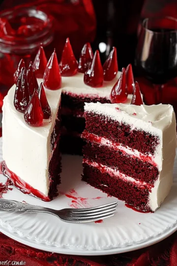Indulgent Bloody Red Velvet Cake with Candy Glass Shards