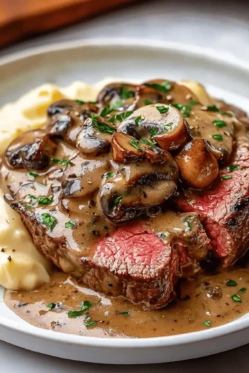 Indulgent Steak Diane with Mushroom and Cream Sauce Delight