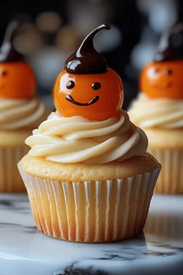 Indulgent Lemon Curd Cupcakes with Chocolate Covered Cherry Pumpkins