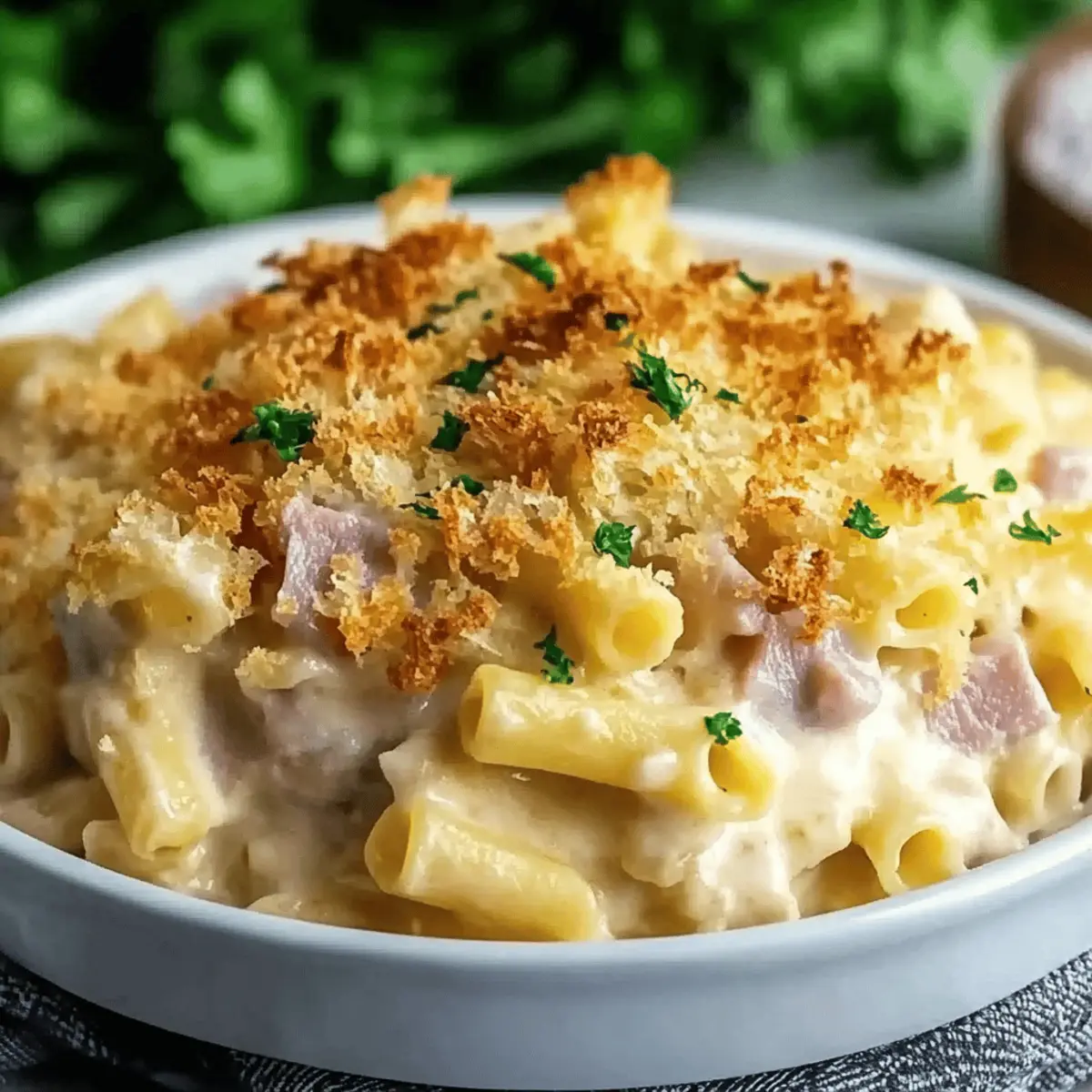 In a small bowl, combine panko bread crumbs with melted butter and garlic powder. This mixture will add that delightful crunchy topping your Chicken Cordon Bleu Casserole deserves. Sprinkle this mixture evenly over the cheese sauce, creating a golden crust that will contrast beautifully with the creamy layers beneath it.