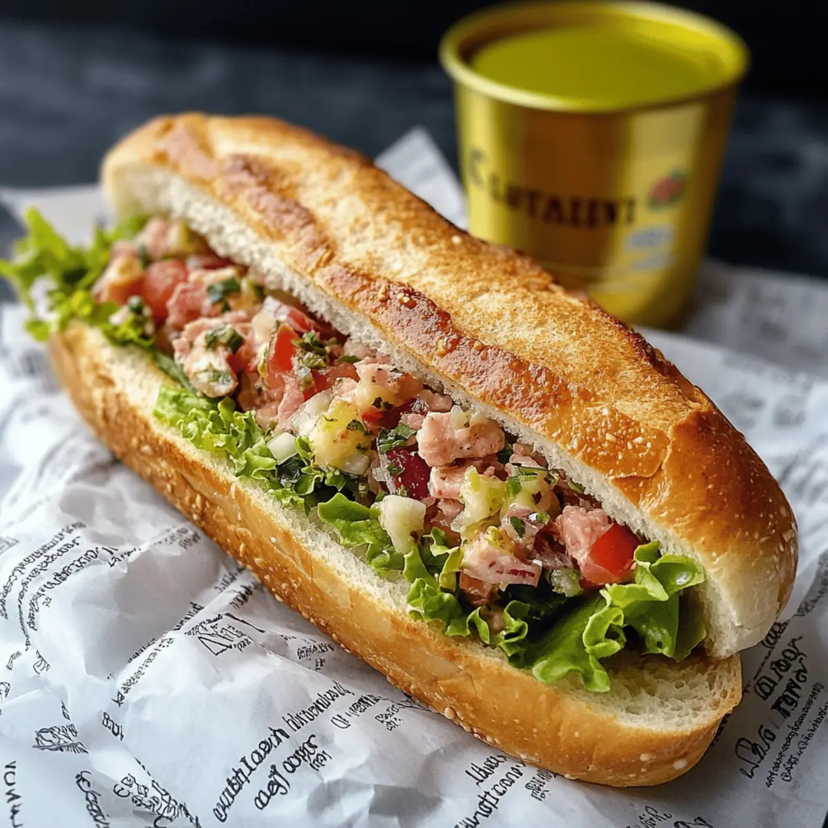 Freshness is key in this Chopped Italian Grinder Sandwich, balancing delightful textures from crispy vegetables with rich, savory meats. Customizable to suit your preferences, you can swap ingredients for a personalized twist—try grilled veggies for a vegetarian option! Quick and Effortless: Forget long prep times, this no-cook recipe comes together in minutes. Crowd-Pleaser: Perfect for lunches or casual gatherings, everyone loves the burst of Italian-American flavors. Easy Storage: The filling can last in your fridge for days, making it a go-to for quick meals. So, are you ready to fill your belly with a satisfying sandwich?