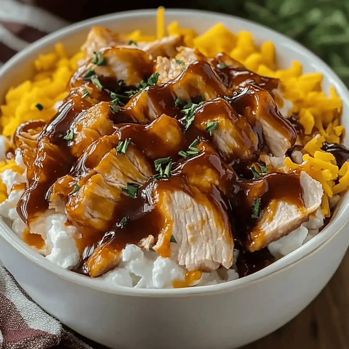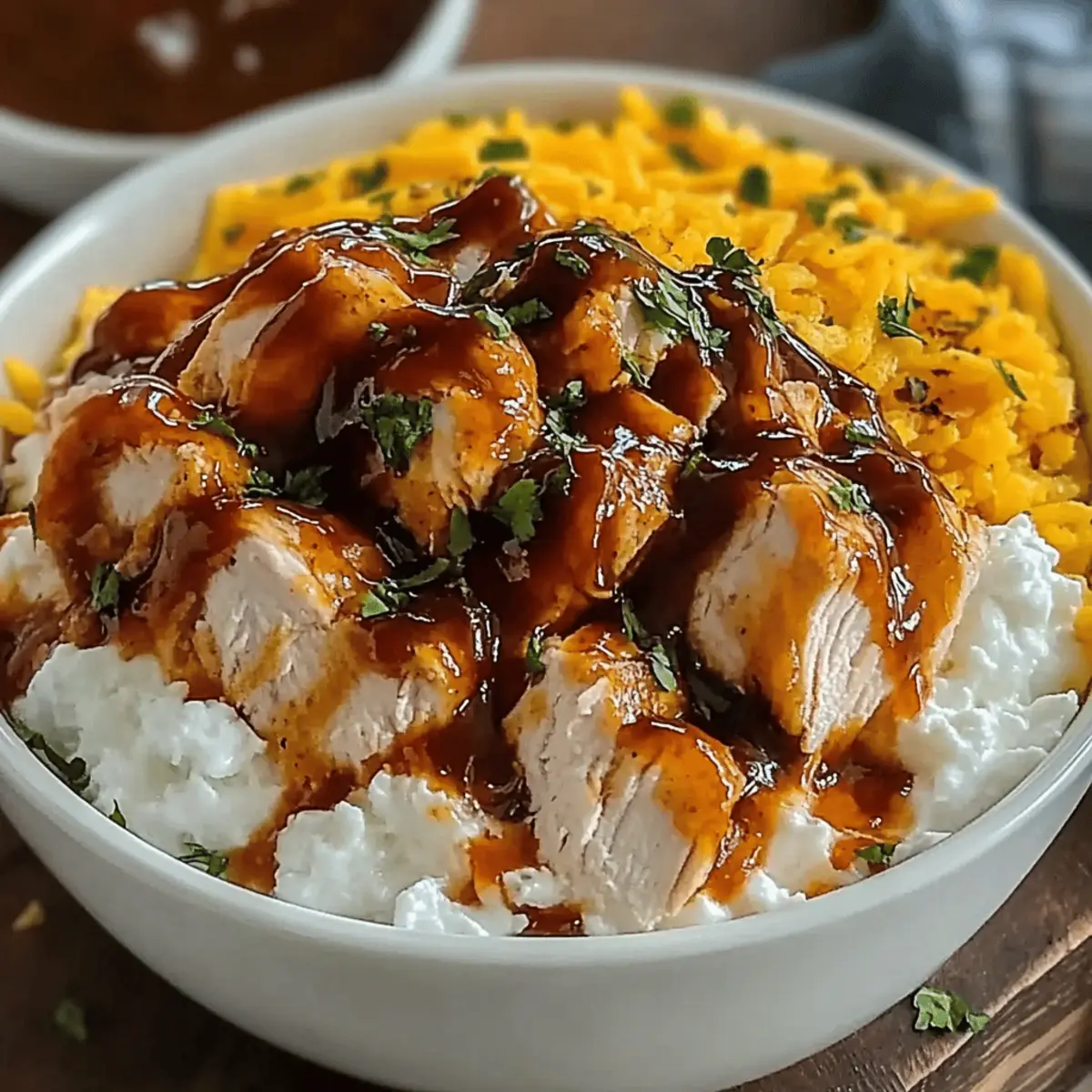 As I rummaged through my fridge one hectic evening, I stumbled upon a little tub of cottage cheese and a half-empty bottle of BBQ sauce. It struck me: why not fuse these together for something extraordinary? Thus, the Quick Cottage Cheese BBQ Chicken Bowl was born—a delightful blend of tender chicken, creamy cottage cheese, and zesty BBQ goodness, ready in just 30 minutes. This recipe stands out not only for its ease but also for its health benefits, allowing you to indulge without the guilt. Perfect for busy weeknights, it’s sure to satisfy your cravings while keeping your calorie count in check. With room for personal touches, it’s customizable to your taste! What toppings will you choose to make it uniquely yours?