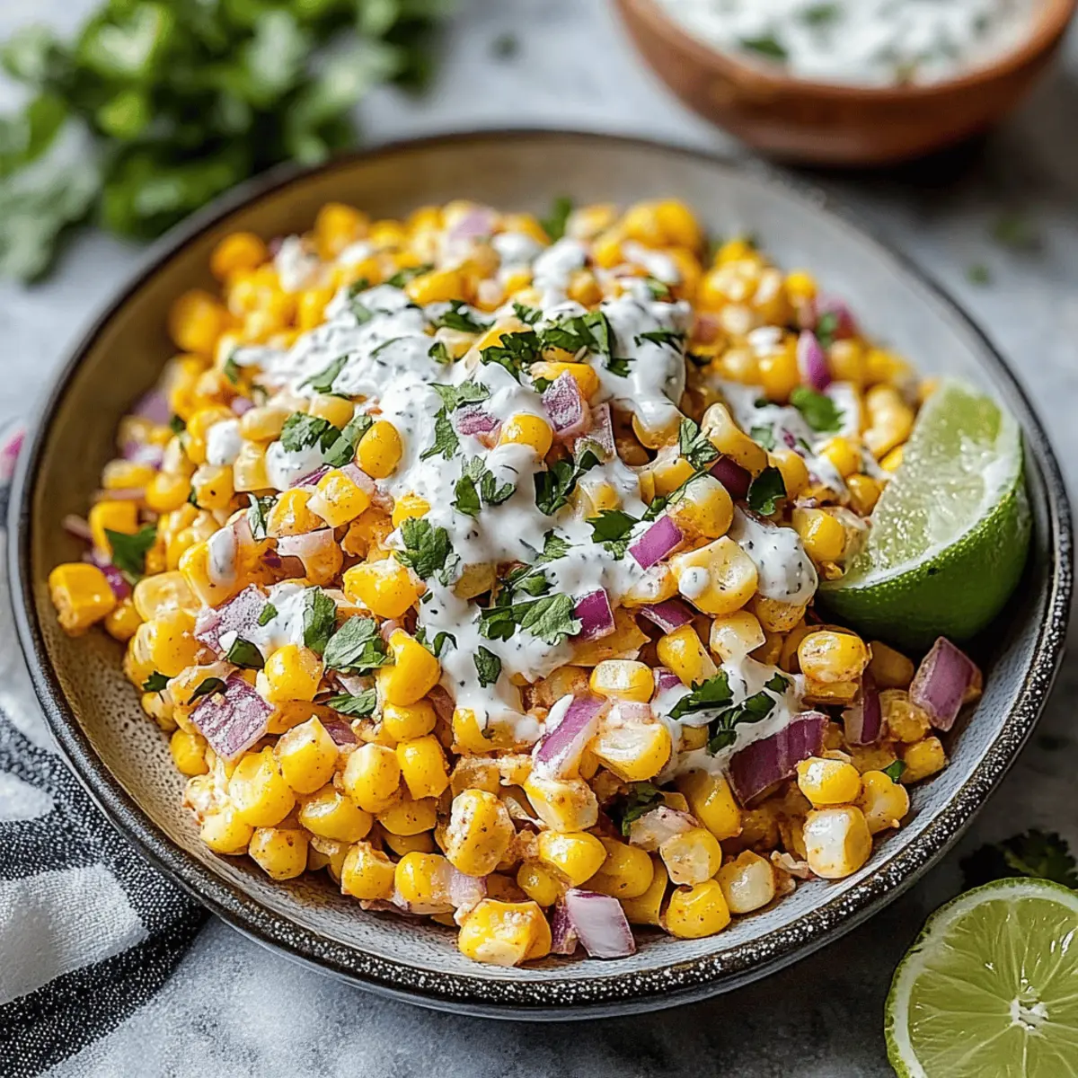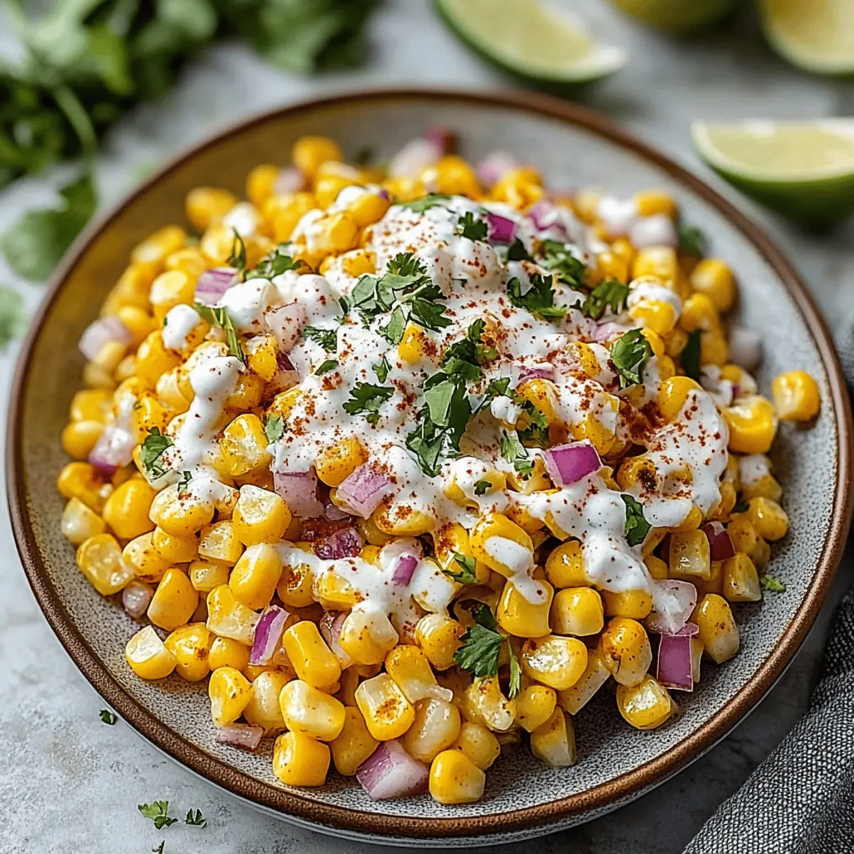 Vibrant flavors burst from every bite, transforming your usual side dish into a crowd-pleaser that evokes the lively atmosphere of Mexican street markets. Customizable to suit any dietary preference, simply swap mayo for vegan options to ensure everyone can enjoy this dish. Quick and easy to prepare, this salad can be whipped up in under 30 minutes, making it a fantastic choice for last-minute gatherings. Perfectly paired with grilled meats or as a dip for chips, its versatility ensures it fits seamlessly into your summer menu. Get ready to impress your guests and elevate your meals with this delightful Mexican Street Corn Salad!