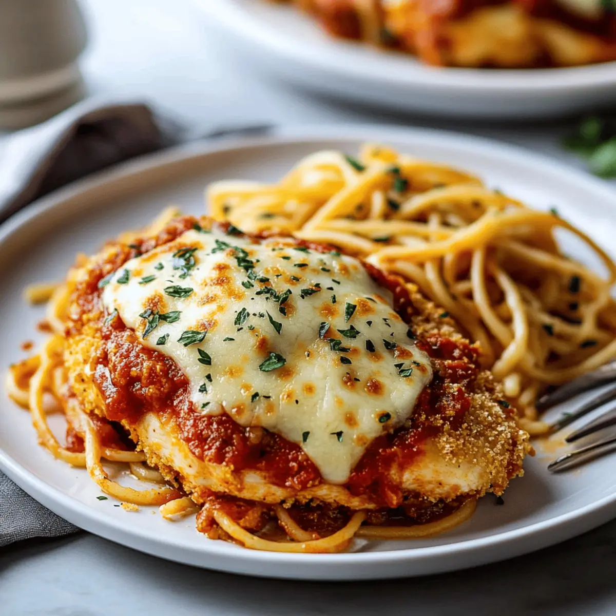 Vegetarian Delight: Swap chicken for sliced eggplant layered with marinara and cheese. It’s a satisfying option that still captures the classic flavors.