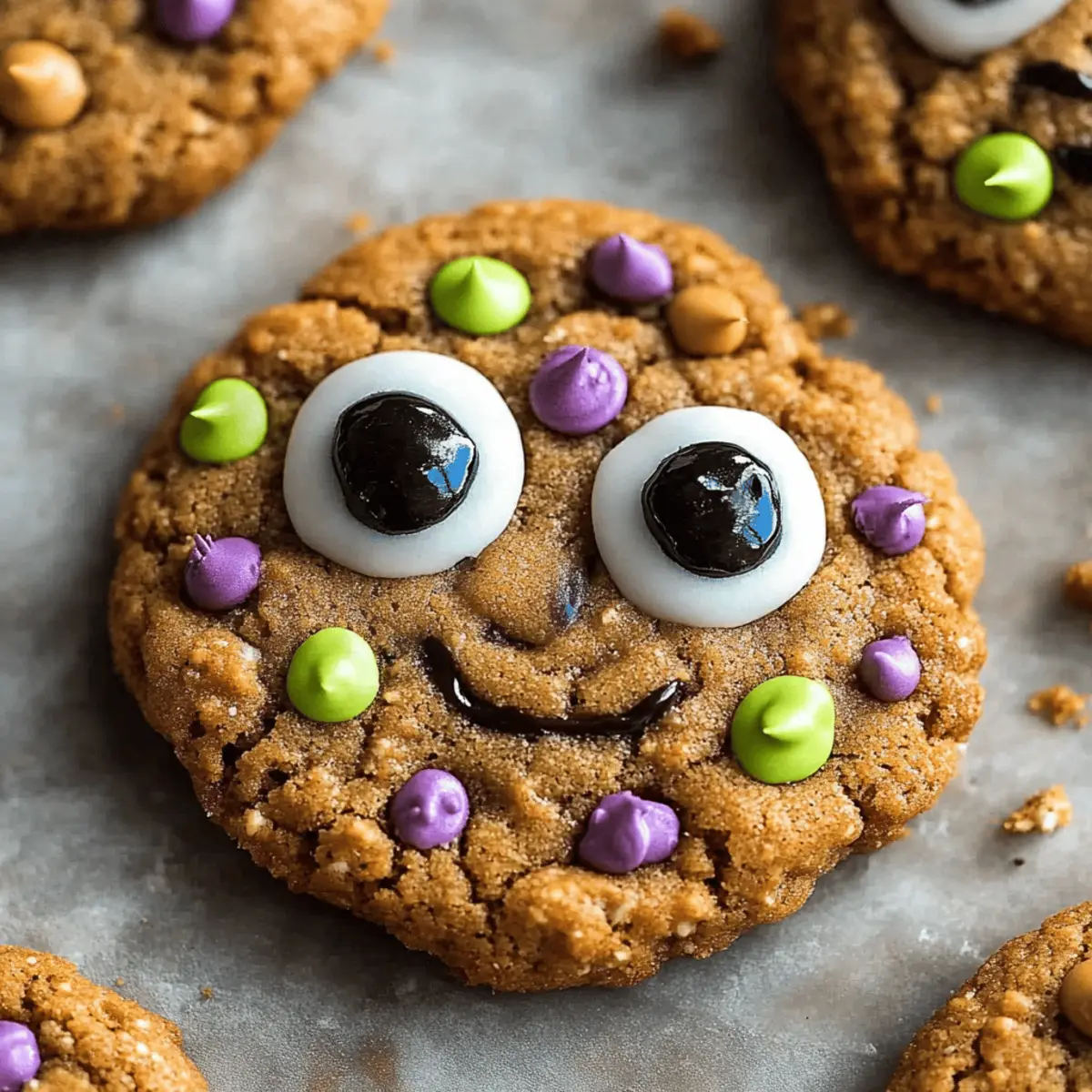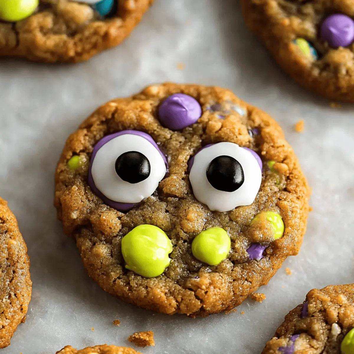 As soon as they come out of the oven, press candy eyeballs gently into the center of each warm cookie. These whimsical toppings create the playful monster effect, perfect for any themed gathering. Allow the cookies to cool on the baking sheet for a few minutes before transferring them to a wire rack to cool completely.