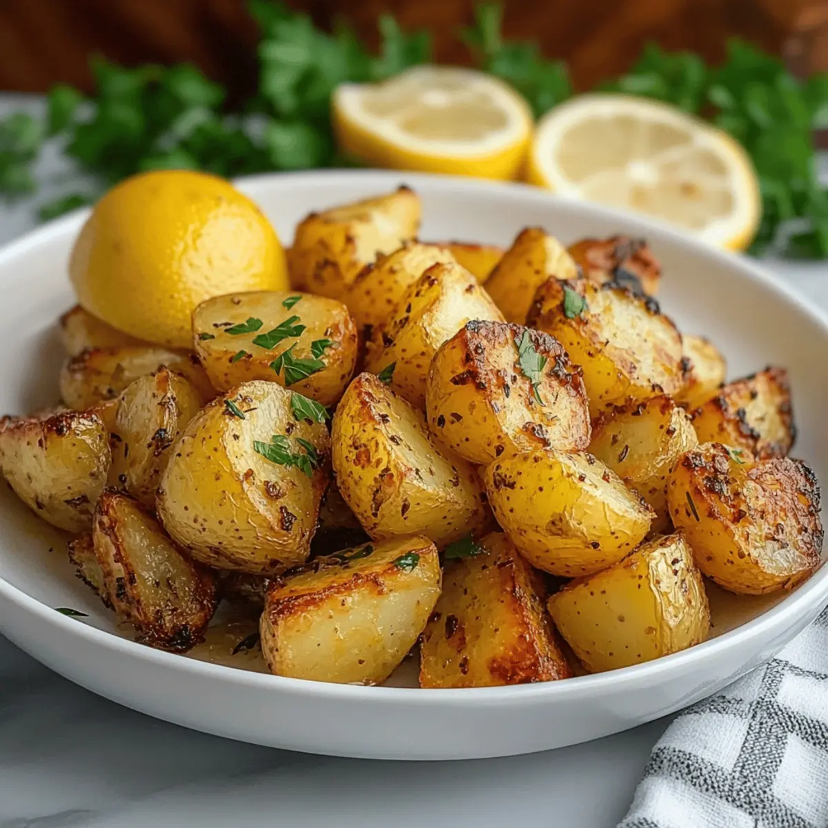The aroma of lemon and garlic wafting through the kitchen sparks a memory: a cozy family gathering where everyone gathered around the table, anticipation bubbling in the air. Today, I'm excited to share my Greek Lemon Garlic Roasted Potatoes, a side dish that's not just a meal addition, but a celebration of flavors that transform Yukon gold potatoes into something extraordinary. This recipe, which is naturally gluten-free and adaptable for various dietary preferences, boasts an effortless prep time that makes it perfect even for busy weeknights. Crispy on the outside while remaining tender and creamy inside, these potatoes serve as a versatile accompaniment to grilled meats, Mediterranean dishes, or simply as a stand-alone joy. Ready to elevate your next meal? Let’s dive into the deliciousness!