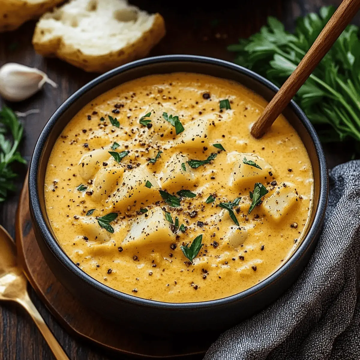 Comforting Warmth: This Hearty Cheddar Garlic Herb Potato Soup is like a warm hug on a chilly day, turning simple ingredients into a cozy masterpiece.