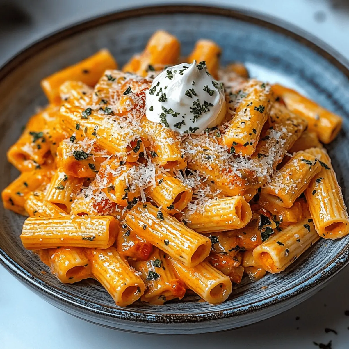 To finalize your Creamy Tomato Garlic Rigatoni Pasta, plate generous portions and garnish with freshly chopped parsley, an optional sprinkle of Parmesan cheese, and a touch of cracked black pepper for added flavor. The warm, inviting colors and rich aroma make this dish not just a meal, but a comforting experience you'll want to share with loved ones.