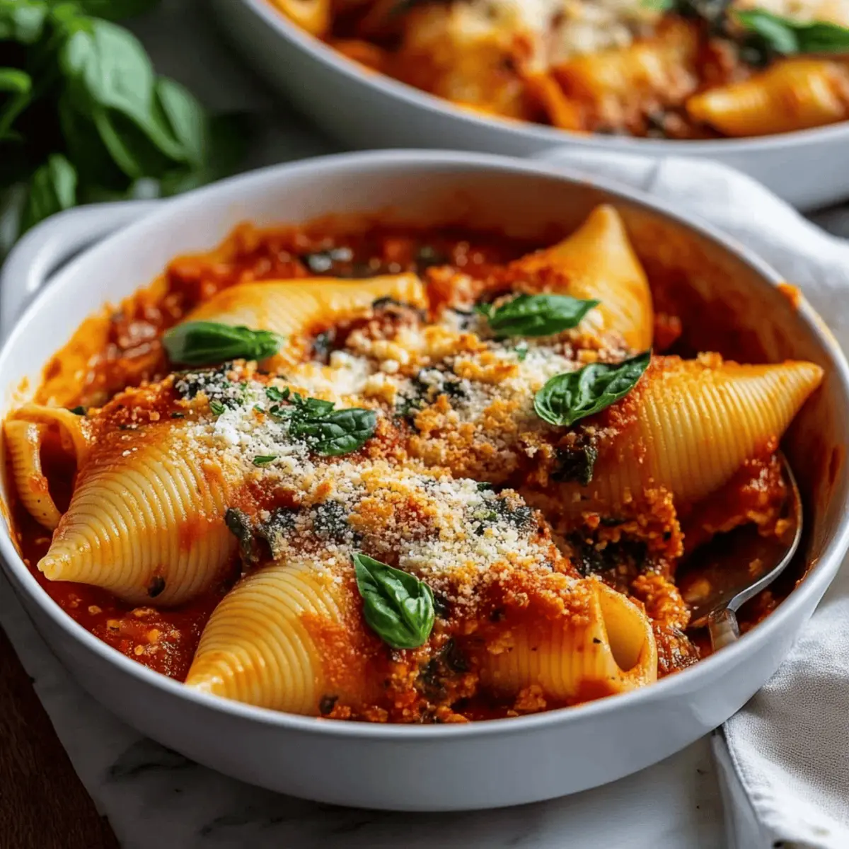 As I peeled back the layers of my grandmother's old recipe book, I stumbled upon a treasure that instantly took me back to my childhood kitchen. These Creamy Spinach Ricotta Stuffed Shells with Rich Tomato Sauce are not just a meal; they’re a heartwarming reminder of family gatherings and cozy evenings. With their creamy filling and savory sauce, these delightful shells are surprisingly easy to whip up, making them a perfect addition to your weeknight dinners or when entertaining guests. Packed with nutrients and made with simple ingredients, they strike the balance between comfort food and healthy eating. Curious how these delectable little parcels come together? Let me share the magic of making this dish that brings smiles around the table!