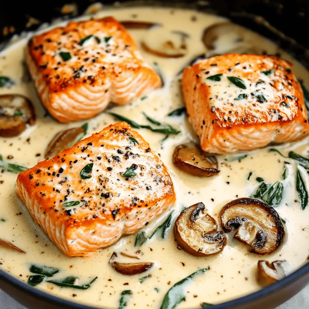 These Tuscan Salmon with Parmesan Cream Sauce are perfect for meal prep enthusiasts! You can season and sear the salmon fillets up to 24 hours in advance, storing them in the refrigerator to maintain their freshness. The creamy sauce can be made, cooled, and stored in an airtight container for up to 3 days. When it's time to enjoy your meal, simply reheat the sauce gently on the stove, adding a splash of cream to keep it silky. Return the salmon to the pan to warm through in the sauce, ensuring it retains that tender, flaky texture. With these make-ahead options, you can indulge in a gourmet dinner experience with minimal effort during busy weeknights!