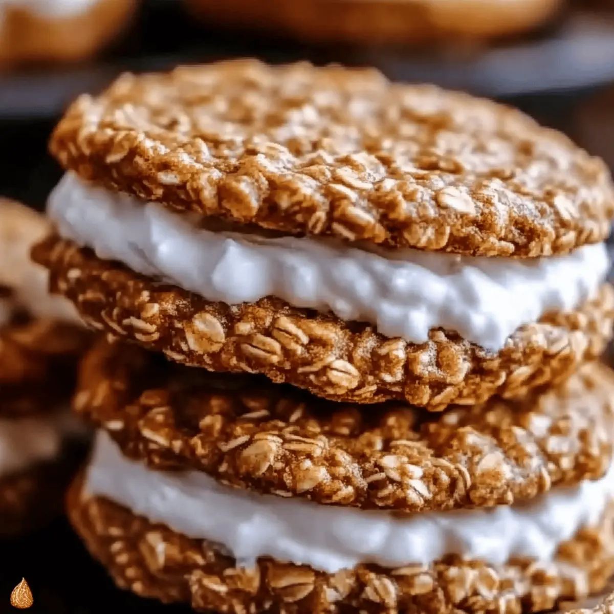 Once your cookies are completely cool, flip half of them so the flat sides are facing up. Generously spread the cream filling on each flat side and top with another cookie, pressing gently to create a sandwich. Your delightful Pumpkin Oatmeal Cream Pies are now ready to share and enjoy!