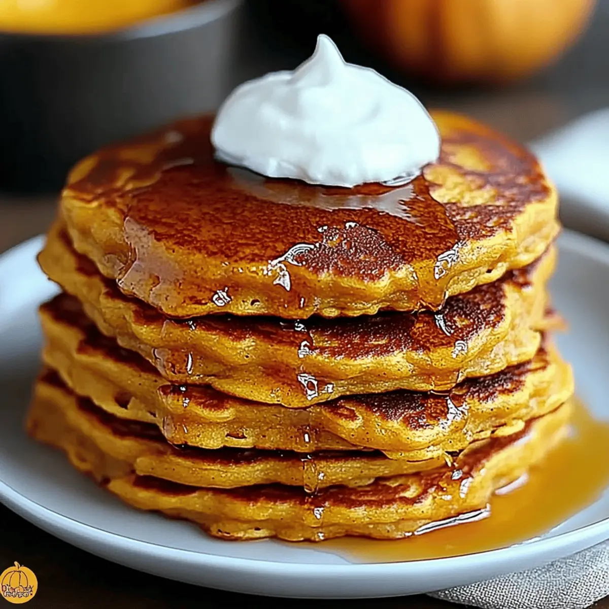 Stack your gorgeous Pumpkin Pancakes on a plate and top them with butter and warm maple syrup. For an extra touch, sprinkle some cinnamon or add nuts for a delightful crunch. These pancakes are perfect for cozy fall mornings, and sharing them will surely bring smiles around your kitchen table!