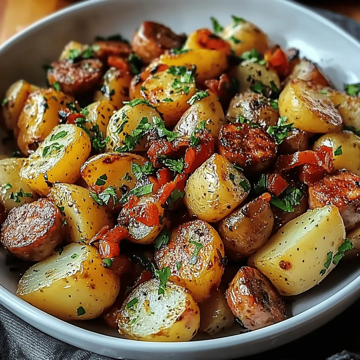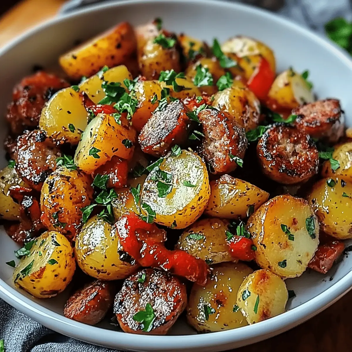 Garlic Bread: Serve warm, buttery garlic bread to soak up any leftover juices from the skillet. The smoky, savory notes of the bread enhance the flavors of the sausage and potatoes beautifully.