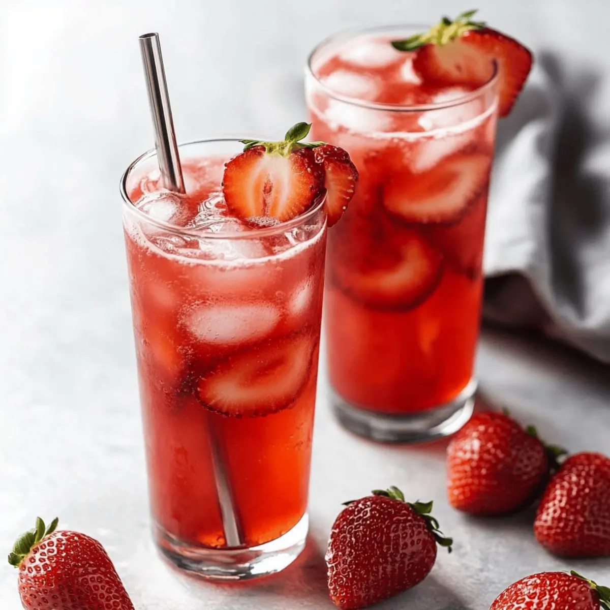 - Serve in tall glasses with ice, garnished with fresh strawberry slices, and enjoy immediately!